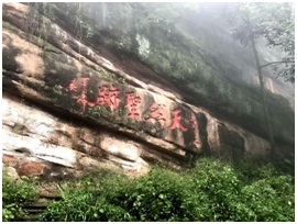 翌日,团队轻装简行,分组开始了登山活动。登山途中,队员间互帮互助、砥砺前行,期间山间下起了小雨,路面湿滑,加大了攀登难度,但经过三个多小时的跋涉,终于登顶。俗话说“青城天下幽”,举目望去,薄雾绵延、林木葱郁,一派清幽。大家相视一笑,欣赏着这难得景致、体会着成功登顶的喜悦。